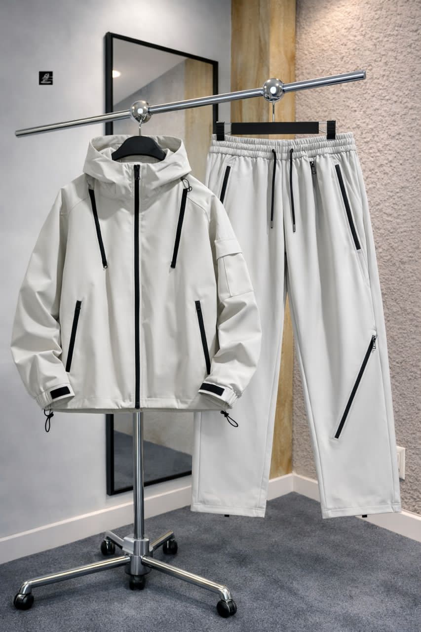 Master the urban landscape with this technical utility set, featuring multi-zip compartments and a weather-resistant hooded jacket. This ensemble combines high-function gear with a clean, avant-garde aesthetic for the modern trendsetter.